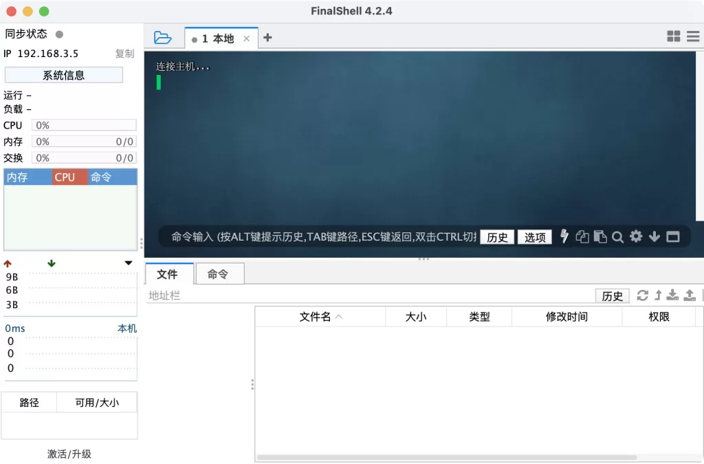 FinalShell是一款国人开发的SSH客户端工具,多平台支持Windows,Mac OS X,Linux。主要用于一体化服务器管理,软件支持shell和sftp同屏显示,并同步切换目录,不止如此,而且软件带有命令自动提示,让您的命令输入更加简单、便捷,另外,软件带有加速的功能,可以提高访问服务器的速度。